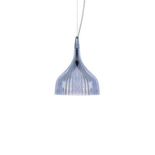 A lamp of simple and essential design, available in two versions, wall sconce and suspension lamp. The wall sconce is composed of a rosette lampshade in pleated polycarbonate available in several colours with an 11 cm chrome arm. The É suspension lamp consists of a pleated polycarbonate lampshade and a chrome rosette. The cable can be adjusted in height from 20 to 220 cm. Both versions take a 40 Watt light-bulb.