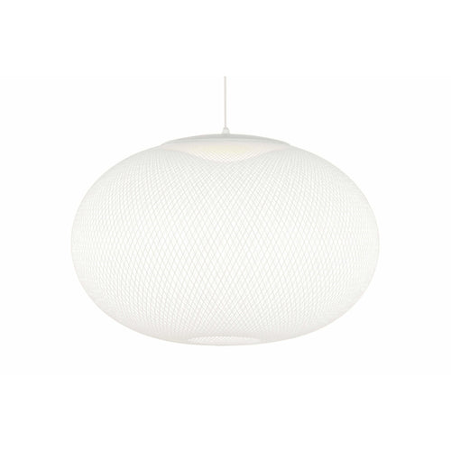 NR2 by Bertjan Pot is an elegant and bright bubble of white or black thread. The lattice pattern creates a fine web that shines and glimmers in the light. The fine web is oval-shaped and bears the signature style of Bertjan Pot; designs created from an experiment with different materials. The integrated LED lamp in NR2 subtly diffuses a soft and magical glow around the room. NR2 is available in two different colors and sizes.